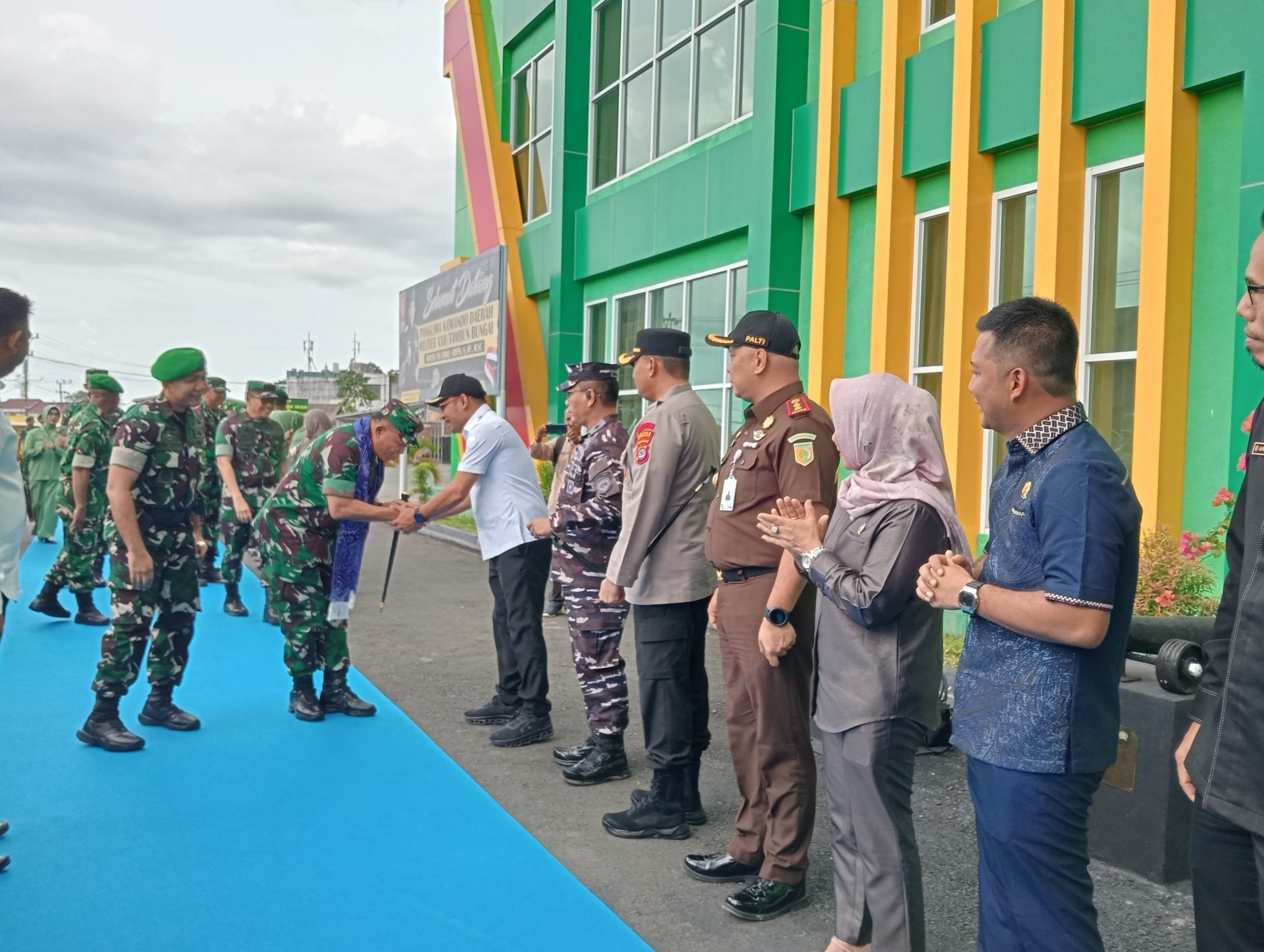 KALIMANTANDIGITAL.COM, KOTABARU — Pemerintah Kabupaten Kotabaru menyambut kunjungan kerja Panglima Komando Daerah Militer (Pangdam) XXII/Tambun Bungai, Mayjen TNI Zainul Arifin, S.AP., M.Sc., bersama rombongan di Makodim 1004/Kotabaru, Rabu (5/11/2025).